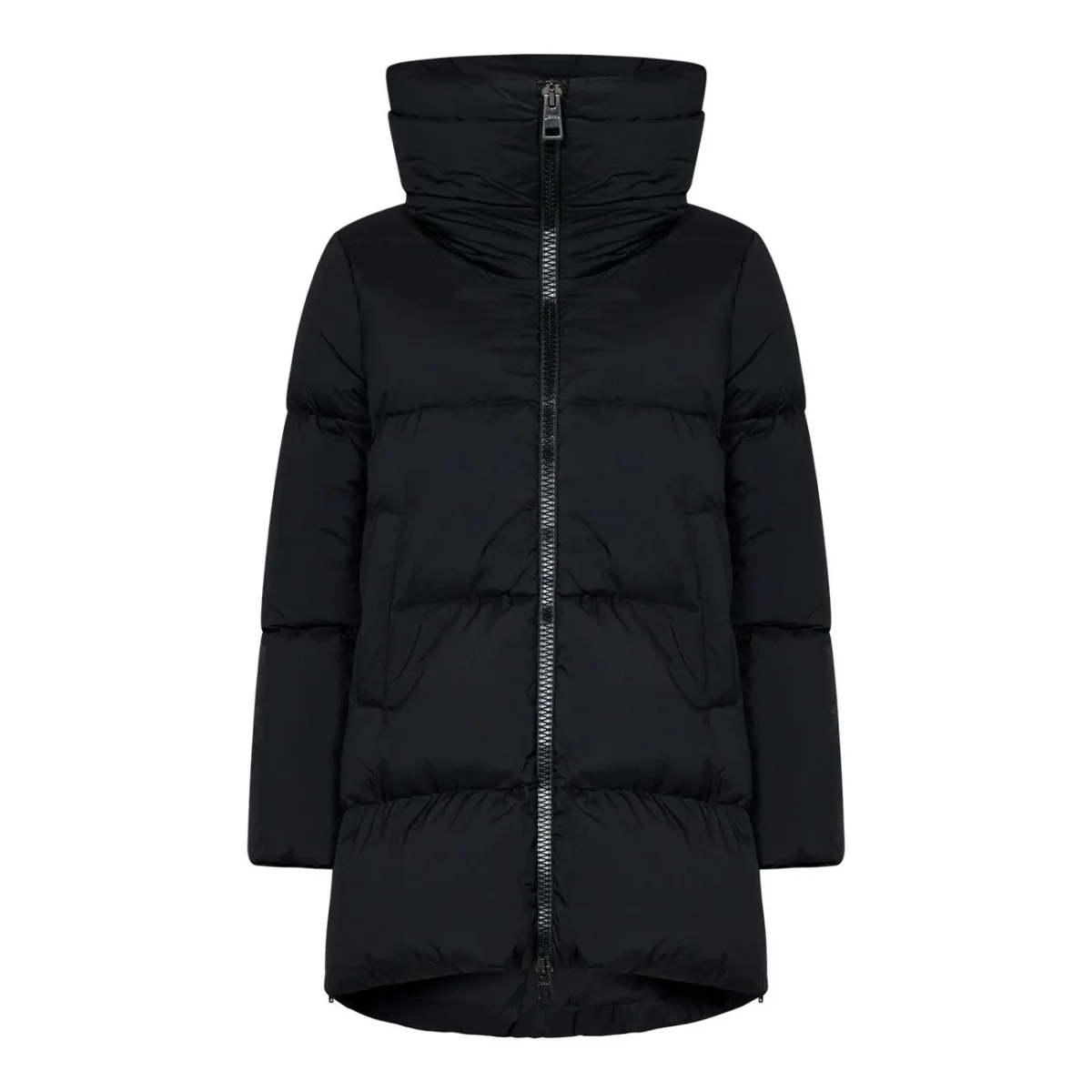 Piumino DONNA – Modello: PI001959D12456Z – Colore: NERO Piumino A-shape in microfibra di nylon riciclato con un leggero coating sul rovescio che rende la texture impermeabile. Vestibilità relaxed, collo alto e chiusura con zip a doppio cursore. Imbottitura in piuma d’oca e performance trattamente idrorepellente. COMPOSIZIONE: 100% Poliammide