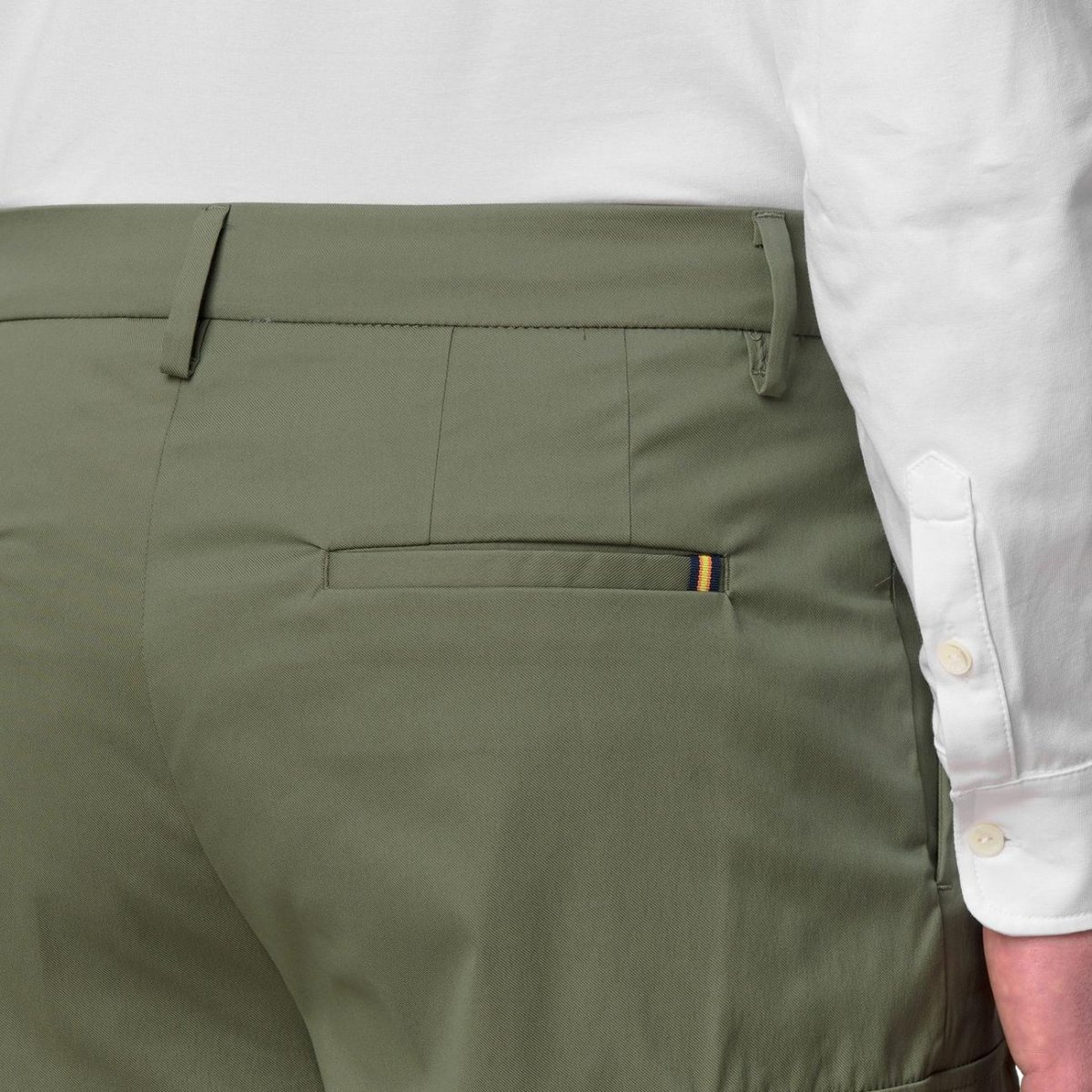 I bermuda Serje reinterpretano il design cargo in chiave contemporanea, unendo lo stile essenziale del taglio chino a una vestibilità regolare e confortevole. Realizzati in gabardine tecnico elasticizzato, assicurano massima libertà di movimento e freschezza durante le stagioni più calde. Il modello a gamba dritta è arricchito da funzionali tasche applicate, pince frontali e una raffinata chiusura a scomparsa. Ogni dettaglio è curato per garantire versatilità, rifinito dall’iconico tape personalizzato K-Way che ne firma l’autenticità.